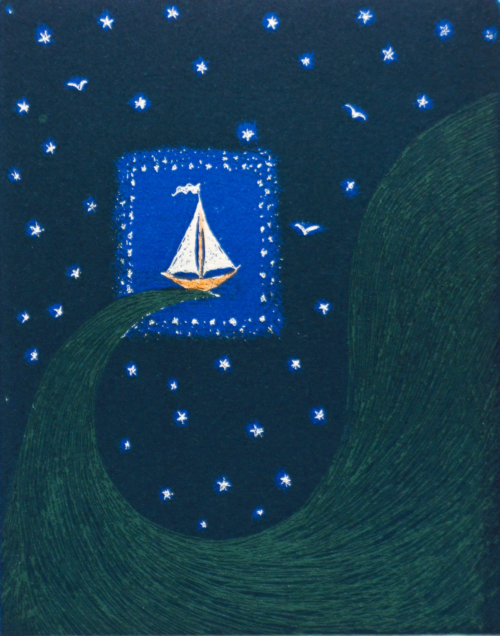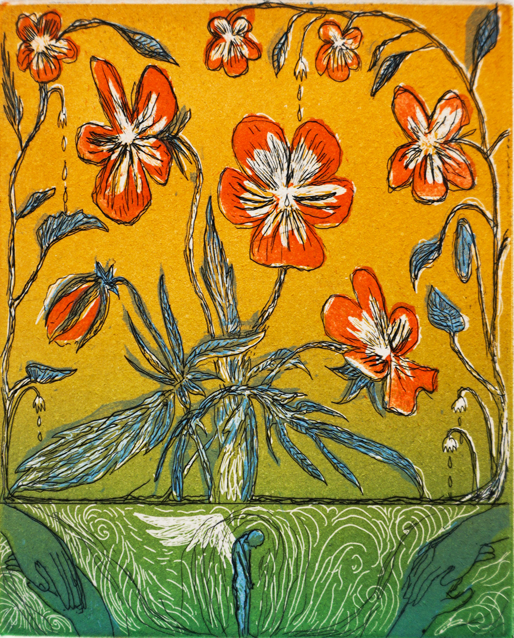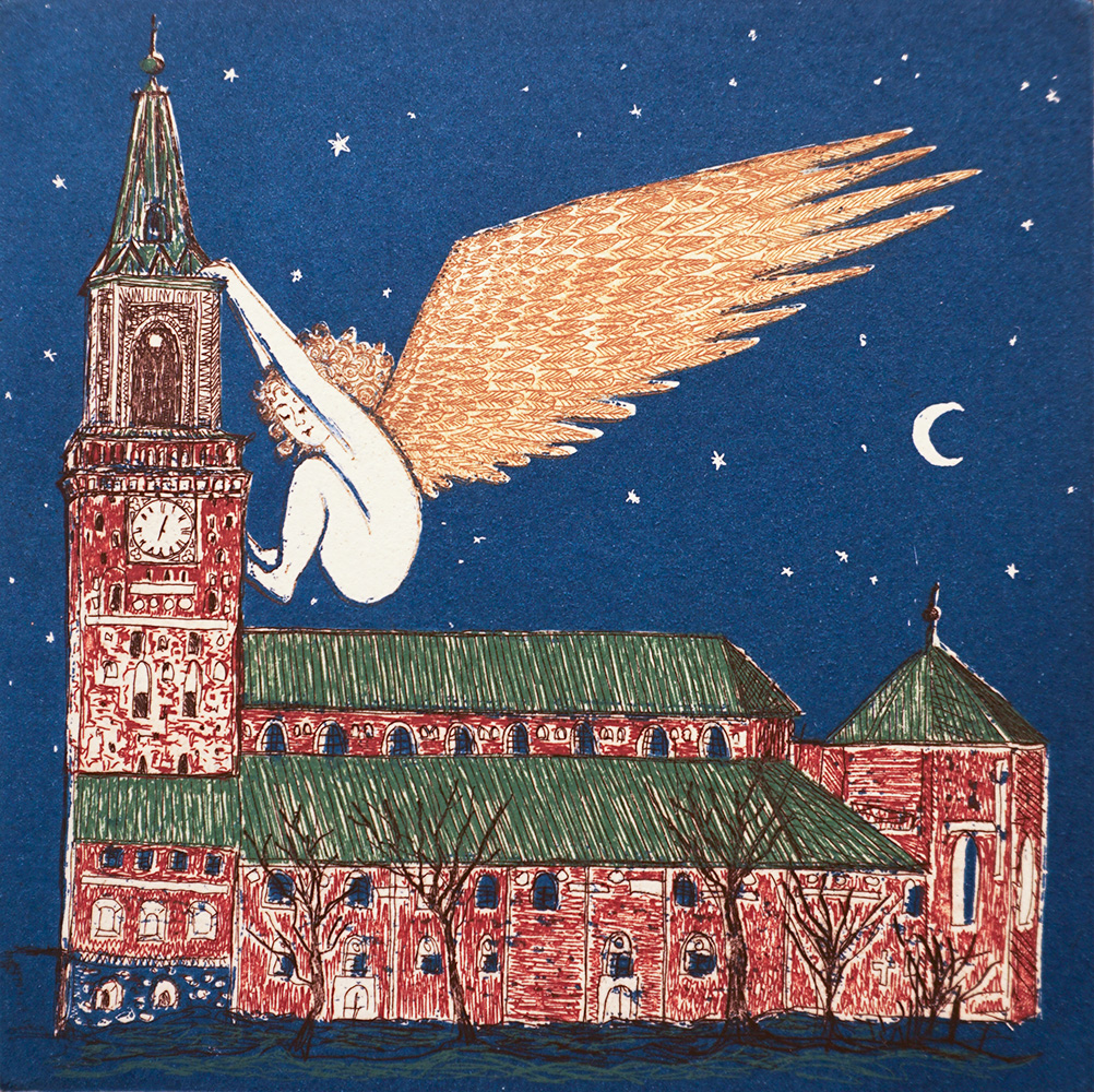 En tiedä, valitsiko metalligrafiikka tekniikkana minut vai minä tekniikan, se tuntui heti omalta. Etsauksen piirrostyö vaatii suunnitelmallisuutta, kärsivällisyyttä, työvedoksia, värikokeiluja ja kuitenkin kuparilevyjen syövytys on lähestulkoon maaginen tapahtuma yllätyksineen. Uuden taideteoksen synnyttyä onnistuneesti, saatan liikuttua itsekin."