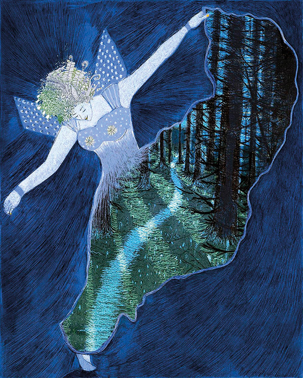 "Rakastin pienenä satuja. Lumouduin satukirjan viivapiirroksista niin, että päätin isona ruveta taiteilijaksi. Tarinoista eniten rakastin taikuutta. Kuvataiteessa voin yhdistää "taikuuden" kädentaitoon – luoda väreistä ja pintamateriaaleista uusia maailmoja ja tarinoita, avata ihmeitä näkyviksi.